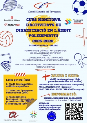 CALENDARI GENERAL CURS MONITOR-A ACTIVITATS DE DINAMITZACIÓ ÀMBIT POLIESPORTIU 25/26 I (Nadal)